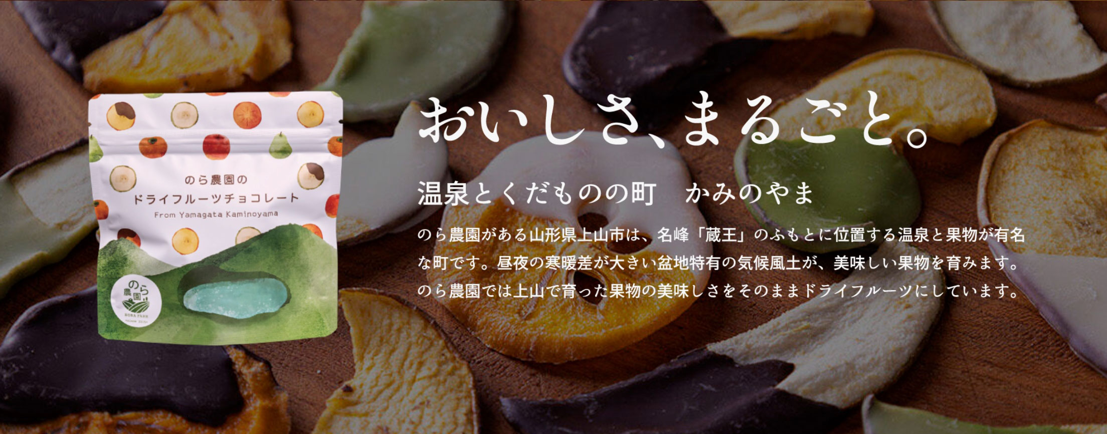 自家栽培の野菜や果物をじっくりと時間をかけて乾燥させました。乾燥させることにより味が凝縮されます。生の野菜や果物とは違う食感やおいしさをお楽しみください。